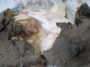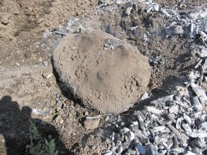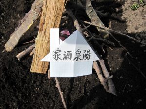 そば生地に包んで畑に埋める。
