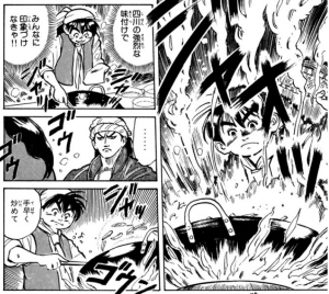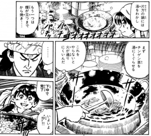 で、マオの反論としては、お湯に加えた油は”鶏油”と”ピーナツ油”だからあっさりしていた問題ない、というもの。このマンガの舞台である清朝末期は鶏油とピーナツ油はあっさりしてた方なのかな。サラダ油に慣れてしまった我々からみたら鶏油もピーナツ油も結構個性の強い油だと思うけど。
