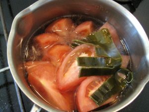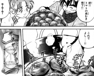 構想段階ではコンブを使いたかった模様。トマトも昆布もグルタミン酸を多く含むらしいから、現代で手っ取り早く化学調味料を使うみたいに、旨味を強調したかったのかな。