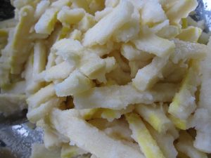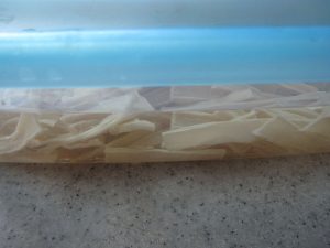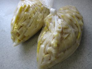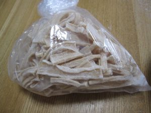 節の部分はやっぱり硬いので切り取った。水に二晩くらい漬けて塩を抜きながら戻す。